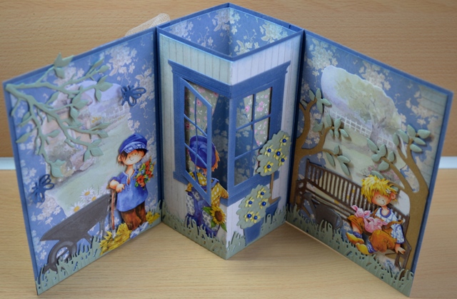 Gastdesigner van vandaag Suzan heeft een echt tuintafereel gemaakt compleet met boom, vogelhuis, vogel en natuurlijk een Snoesje.